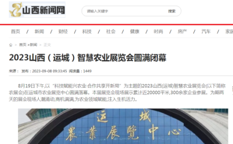 山西(运城)智慧农业展览会作为山西最专业的农业展,受到了多家权威媒体的争相报道,包括中国经济新闻网、腾讯网、山西新闻报、山西新闻网、山西资讯网、山西晚报、农业资讯网、中国农业报道、三农产业网、中国农村网、中国农业网在内的多家媒体报道转载。
