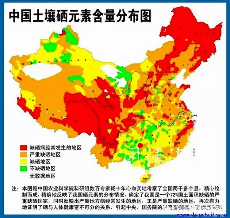 经北京大学、中国科学院、中国微量元素学会、上海微量元素研究会、浙江大学生命科学院长期研究发现,这些长寿之乡的水土、大米、果蔬、茶叶里都检测出硒含量大约为55微克/100克,是全国平均水平的5倍多!(全国水平8-10微克/100克)。
